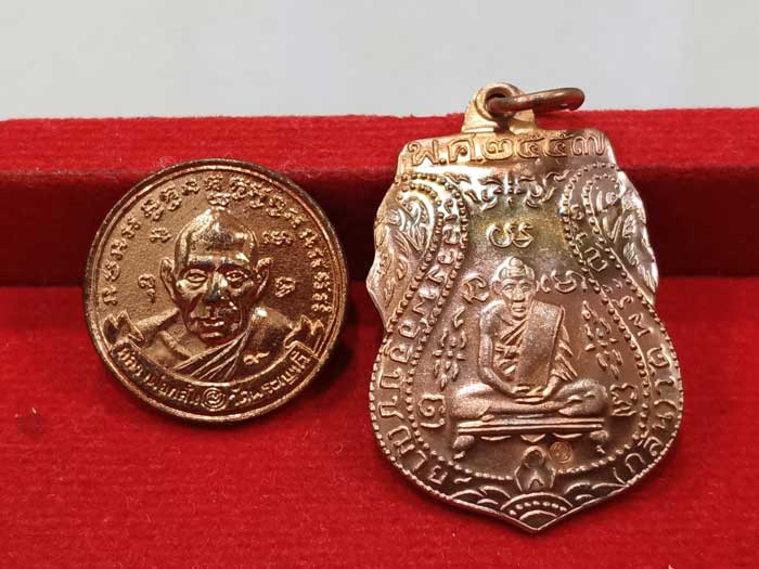 วัดใจ 100 เดียวแดง ++ เหรียญหลวงพ่อกลั่น วัดพระญาติ พิมพ์เสมา ปี2557 + เหรียญกลม ปี 2544