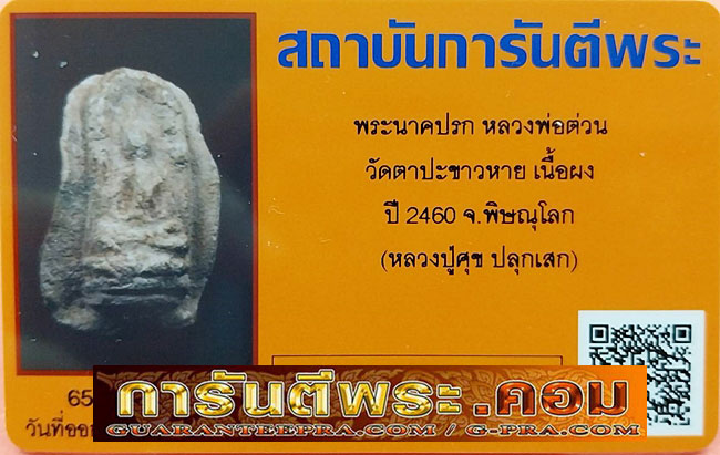ชื่อพระเครื่อง พระนาคปรก หลวงพ่อต่วน วัดตาปะขาวหาย ปี2460(หลวงปู่ศุขปลุกเสก)