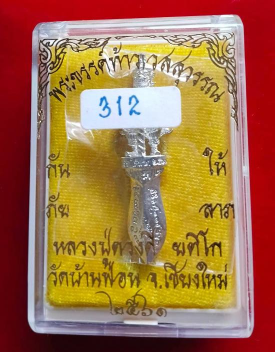 พระขรรค์ท้าวเวสสุวรรณ ปี 2561 เนื้อกะไหล่เงิน หมายเลข 312 หลวงปู่ดวงดี ยติโก วัดบ้านฟ่อน อ.หางดง จ.เชียงใหม่