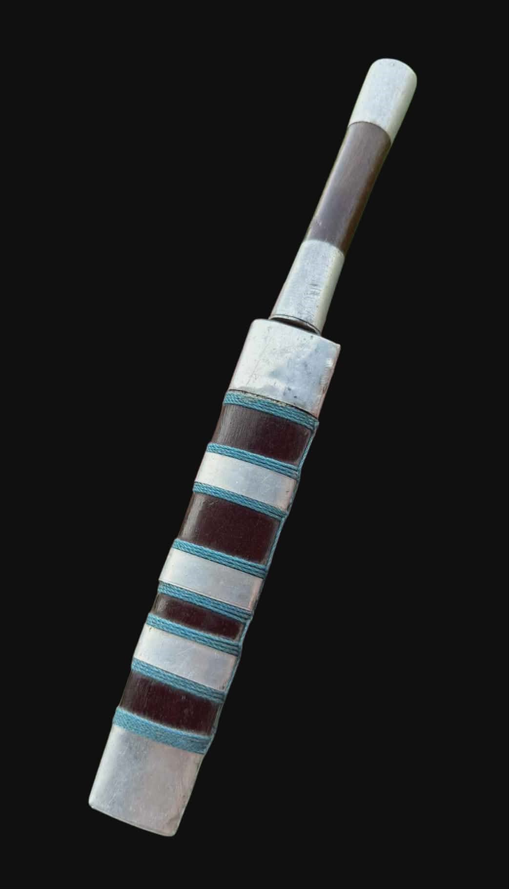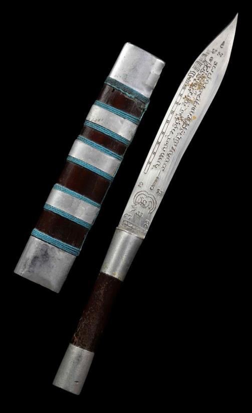 งาน(ช่างแป้ว)จัดเป็นช่างหลักของเขาสมอคอนซึ่งหายากมากพบเจอน้อยปัจจุบันแทบไม่มีหมุนเวียน ทีเห็นสวยๆสภาพเดิมๆก็จะมีที่ลงหนังสืออยู่และก็เล่มนี้ ใบเหล็กขาวลายตอกโครตคลาสสิค มีปิดทองเดิมๆให้เห็น สวยสุดๆใช้ไปยังรุ่นหลานกันเลยไม่ขึ้นสนิมและแทบไม่ต้องดูแล ฝักรัดเชื่อกสีฟ้าเดิมๆหนึ่งเดียวสีนี้ไม่ต้องไปหาเล่มที่สอง เล่มนี้ผ่านหลายมือ แพงครับ ได้ความสวยเดิมความหายาก เอาไว้ใช้กันครับเล่มนี้ไม่โดนก็ถือว่าโชว์แล้วกันครับ