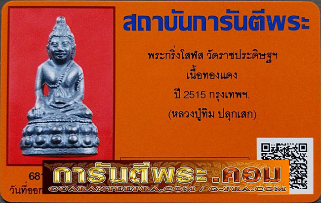 ชื่อพระเครื่อง พระกริ่งโสฬส วัดราชประดิษฐ์ฯ เนื้อทองเหลืองรมดำ ปี2515(หลวงปู่ทิมปลุกเสก)