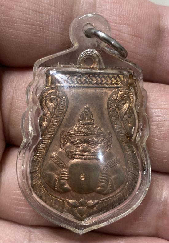พระราหูครูบาสร้อย ขันติสาโร ปี2538 เนื้อทองแดงผิวไฟตอกโค๊ด สวยๆพร้อมเลี่ยมใช้ได้เลย