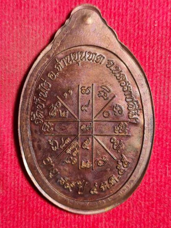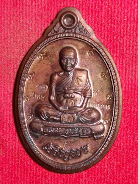 เหรียญหลวงพ่อคูณ ปริสุทโธ รุ่น เจริญพร 89 ออกวัดถนนหักใหญ่ ปี 2555 เนื้อ ทองแดงรมมันปูพิมพ์กรรมการไม่ตัดปีกหลังยันต์ หมายเลข 5 ตอกโค๊ตเลข 9 เก้าตัว เคาะเดียวแดง