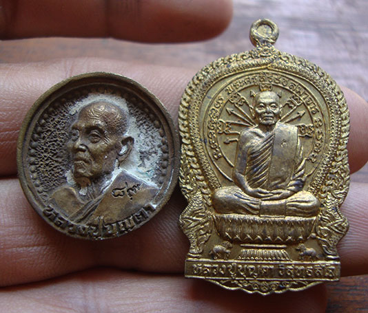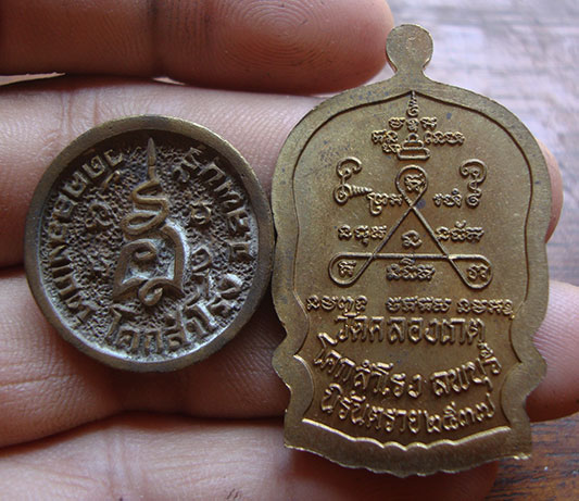 เหรียญหล่อล้อแม็ก (รุ่นแรก ) ปี2537 ตอกโค๊ต + เหรียญนั่งพาน นิรันตราย ปี2537 ( หลวงปู่บุญตา วัดคลองเกตุ จ.ลพบุรี กล่องเดิมสวยครับ