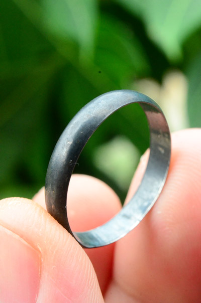 แหวนเงิน ตอกเลขยันต์ เก่าไม่ทราบที่ครับ |
