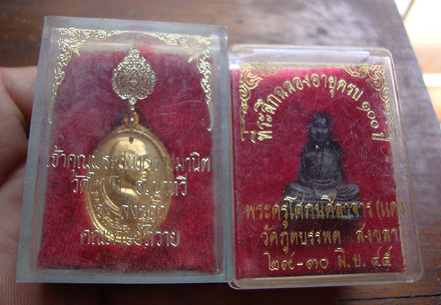 รูปหล่อ หลวงพ่อแดง วัดภูบรรพต จ.สงขา ปี45 + เหรียญเจ้าคุณสุนทรราชมานิต วัดในวัง จ.สงขลา ( 2 องค์ ) กล่องเดิมสวยค่ะ