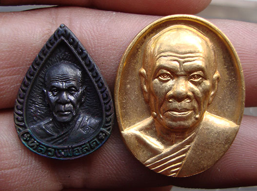 เหรียญรูปเหมือน รุ่นแรก เนื้อนวโลหะ พิมพ์หยดน้ำ โภคทรัพย์ ปี37 + เหรียญ ปลดหนี มีลาภ ปี40 ( หลวงพ่อสด วัดปากน้ำ) 2 เหรียญ กล่องเดิมสวยค่ะ