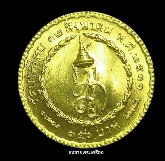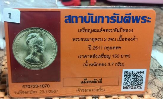 เหรียญสมเด็จพระพันปีหลวง ฉลองพระชนมายุครบ3รอบ ปี2511 เนื้อทองคำน้ำหนัก 3.7 กรัม (เหรียญราชินี 3 รอบ) พร้อมบัตรรับรอง