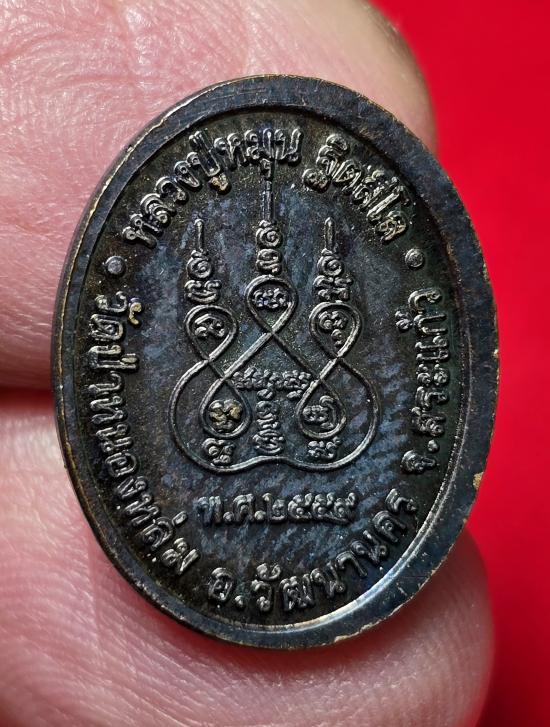 เหรียญเม็ดแตง หลวงปู่หมุน วัดป่าหนองหล่ม รุ่น รวยเบิกฟ้า ปี 59 เนื้อทองแดงรมดำ จัดสร้างโดยวัดป่าหนองหล่ม จังหวัดสระแก้ว เมื่อวันที่ 1 กรกฎาคม 2559 |