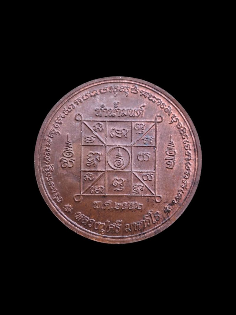 เหรียญทำน้ำมนต์หลวงปู่ศรี มหาวีโร วัดป่ากุง ร้อยเอ็ด รุ่นแรก ปี ๒๕๕๒ เนื้อทองแดง พิมพ์ยันต์นะมหาเศรษฐี ไม่มีกล่อง