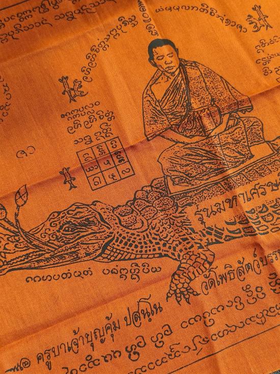 วัดใจ *** ผ้ายันต์ ครูบาเจ้าบุญคุ้ม วัดโพธิ์สัตว์บรรพตนิมิต จ.กาญจนบุรี ขนาด 11 x 16 นิ้ว