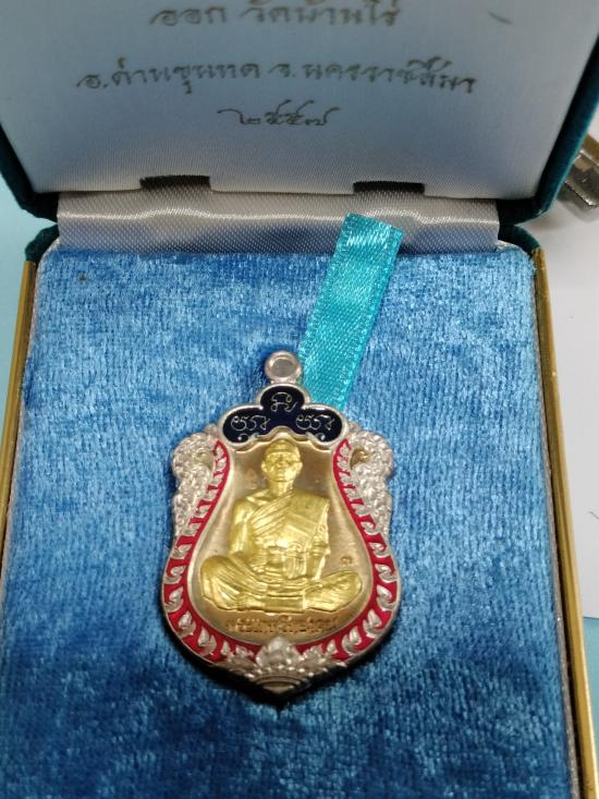 เสมาเจริญพรไตรมาส เนื้อนวะหน้ากากทองคำ กนกเงินลงยาแดง-น้ำเงิน หมายเลข3 พร้อมกล่อง