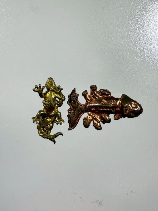 220... จิ้งจก + ปลาปลัด9หัว เสน่ห์ เมตตา ค้าขาย โชคลาภ ตัวเล็ก อ.ประคอง รุ่นเจริญ - พระอาจารย์หนุ่ม วัดบางแวก ปลุกเสก พิธีไหว้ครูปี54