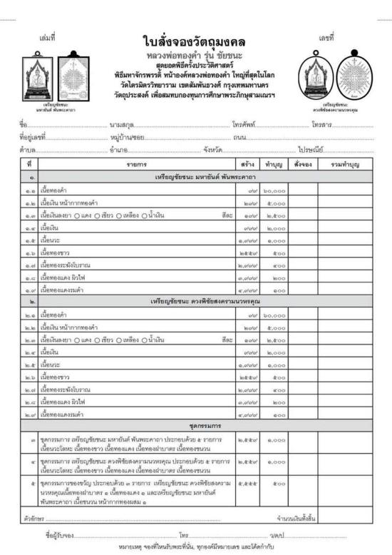 รายละเอียด วันอาทิตย์ที่ 17 กรกฎาคม 2559 เวลา19.19 นาที พิธีมหาพุทธาภิเษกครั้งยิ่งใหญ่ เหรียญหลวงพ่อทองคำ รุ่นชัยชนะ ณ พระมหามณฑปหลวงพ่อทองคำชั้น4 วัดไตรมิตรวิทยาราม กรุงเทพมหานคร หน้าองค์องค์หลวงพ่อทองคำใหญ่ที่สุดในโลก โดยสมเด็จพระพุฒาจารย์ วัดไตรมิตรฯ และเกจิคณาจารย์หลายรูป เช่น เจ้าคุณธงชัย หลวงปู่ฟู วัดบางสมัคร หลวงพ่อทอง วัดปลดสัตว์ หลวงพ่อเเม้น วัดหน้าต่างนอก หลวงพ่อพูน วัดบ้านแพน หลวงพ่อชำนาญ วัดชิณฯ หลวงพ่อพระมหาสุรศักดิ์ วัดประดู่ หลวงพ่อติ๋ว วัดมณีชลขันธ์ เป็นต้น และเจ้าคุณธงชัย วัดไตรมิตรฯ (พระพรหมมังคลาจารย์) พุทธาภิเษกเดี่ยว9วัน9คืน