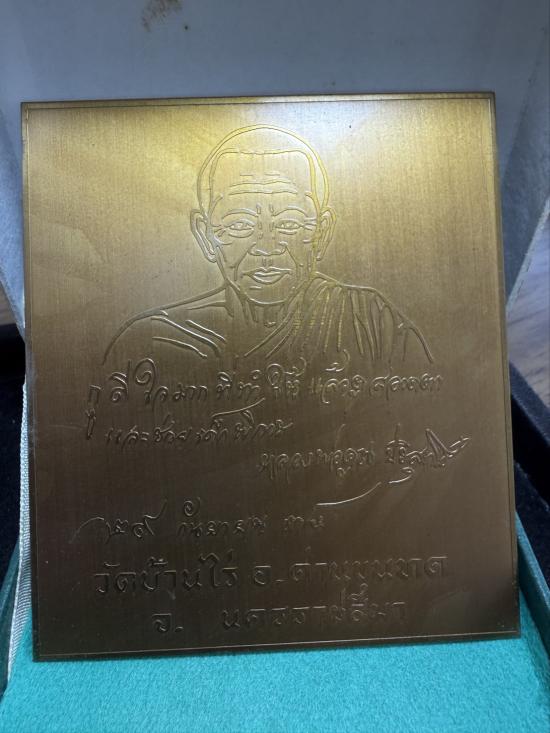 (6)แผ่นปั้มเนื้อทองแดงหลังเรียบ หลวงพ่อคูณ วัดบ้านไร่ สร้างปี 2 538 ขนาด 3.5x4 นิ้ว พร้อมกล่อง