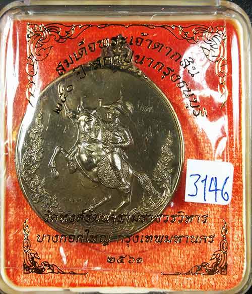 เหรียญสมเด็จพระเจ้าตากสิน เนื้อทองเหลืองรมดำ พิมพ์ A 250 ปี สถาปนากรุงธนบุรี วัดหงส์รัตนารามวรวิหาร