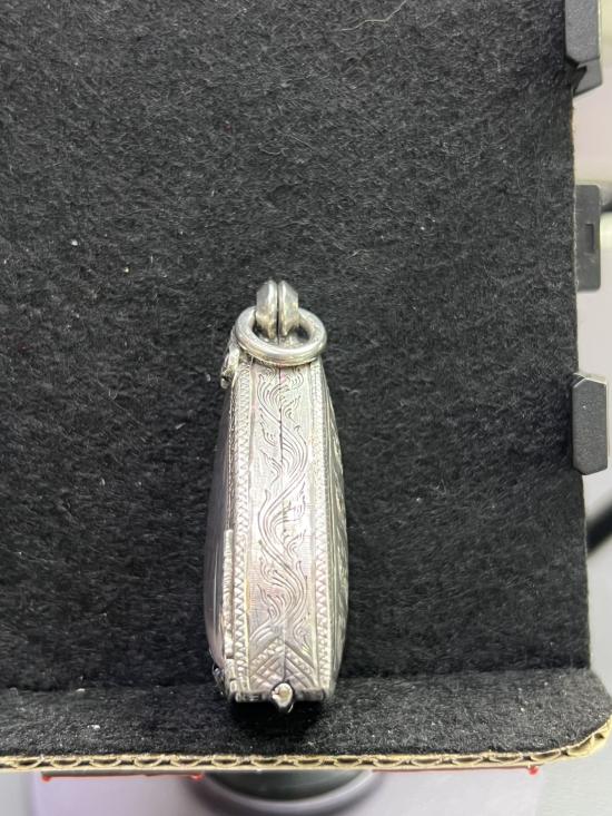 ตลับเงิน มือสอง ใส่หลวงปู่ทวด หลวงพ่อโสธร หรือ พระกรี่งสภาพสมบูรณ์ ใครหาอยู่ไม่ผิดหวังครับ ขนาดหน้าจอฐานกว้าง 18mm สูง 33mm หนา 11mm