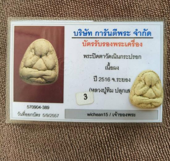พระปิดตาวัดเนินกระปรอก หลังยันต์ห้า เนื้อว่าน หลวงปู่ทิม ปลุกเสก ปี 2516
