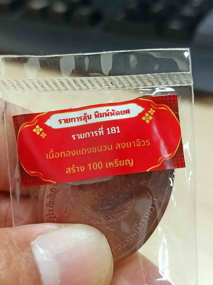 วัดใจ 100 เหรียญเหนือดวง วาระ 9 รอบ หลวงปู่อิ่ม วัดทุ่งนาใหม่ จ.นครศรีธรรมราช 2568 ทองแดงชนวน ลงยาจีวร หมายเลข 971 กล่องเดิม