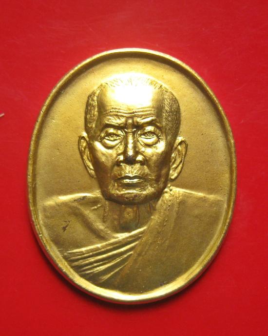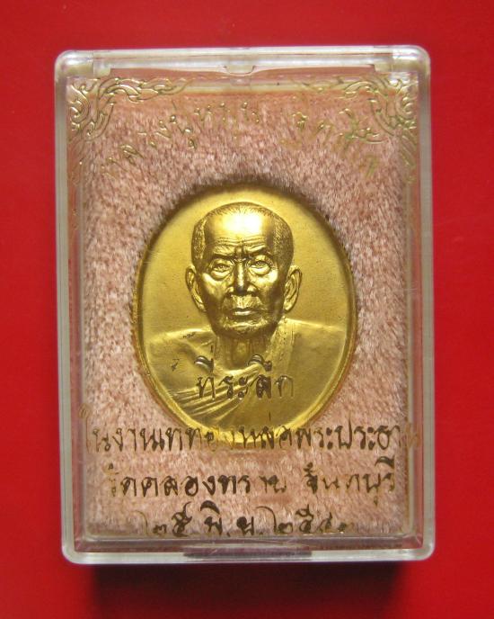 เหรียญหลวงปู่หมุน ฐิตสีโล วัดบ้านจาน เนื้อทองแดงกะไหล่ทอง ที่ระลึกในงานเททองหล่อพระประประทาน วัดคลองทราย ปี 2543 พร้อมกล่องเดิม
