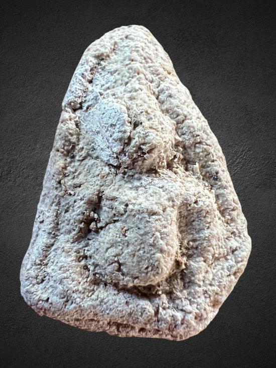 หน้าองค์นี้มีเศษกระดาษสา ผสมอยู่ด้วย ด้านหลังมีรากวัชพืชติดอยู่พอเห็น อ้วนๆ ล่ำๆ