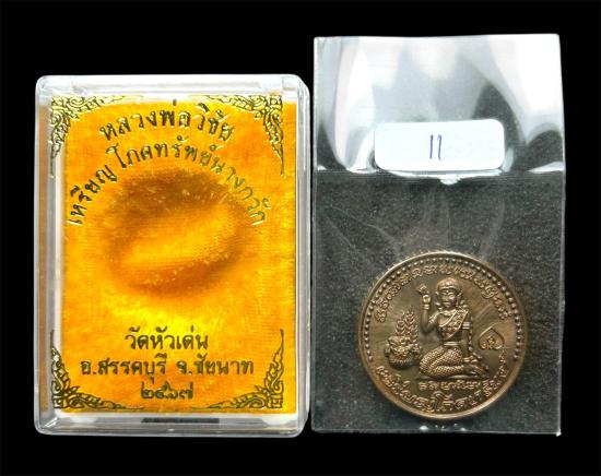 เหรียญโภคทรัพย์ "นางกวักหลังหนุมาน" หลวงพ่อวิชัย วัดหัวเด่น "เนื้อนวะโลหะ" เลขเบิ้ลสวย "11"