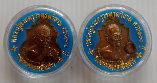 เหรียญหลวงปู่วรพรตวิธาน รุ่น100 ปี วัดจุมพล จ.ขอนแก่น ปี 2543 กรมการทหารสื่อสารจัดสร้าง เนื้อทองแดงรับจำนวน 2 เหรียญ