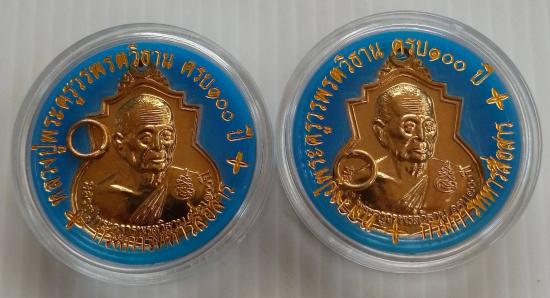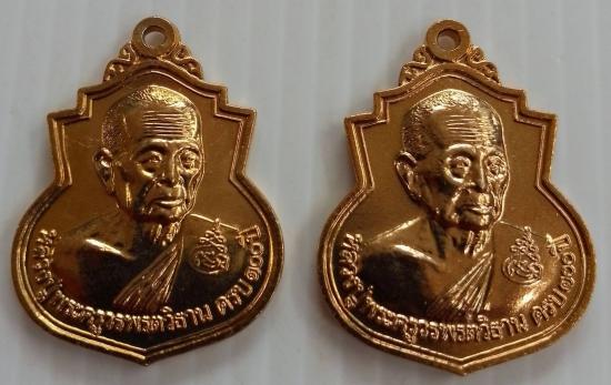 เหรียญหลวงปู่วรพรตวิธาน รุ่น100 ปี วัดจุมพล จ.ขอนแก่น ปี 2543 กรมการทหารสื่อสารจัดสร้าง เนื้อฝาบาตร รับจำนวน 2 เหรียญ
