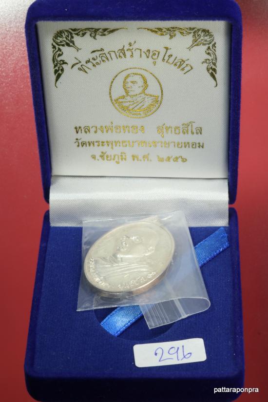 เหรียญหลวงพ่อทอง รุ่นที่ระลึกสร้างอุโบสถ ปี 2556 เนื้อเงิน มีจาร หมายเลข 296