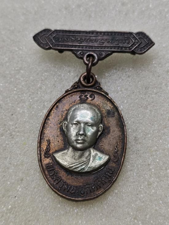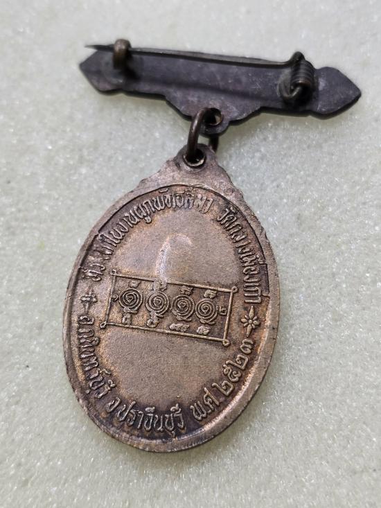 เคาะเดียวแดง เหรียญรูปไข่เนื้อทองแดง( หน้ากากเงิน ฝังกริ่ง )พระครูมนูญกิตติคุณ วัดกลางเมืองเก่า จ.ปราจีนบุรี พ.ศ.2523