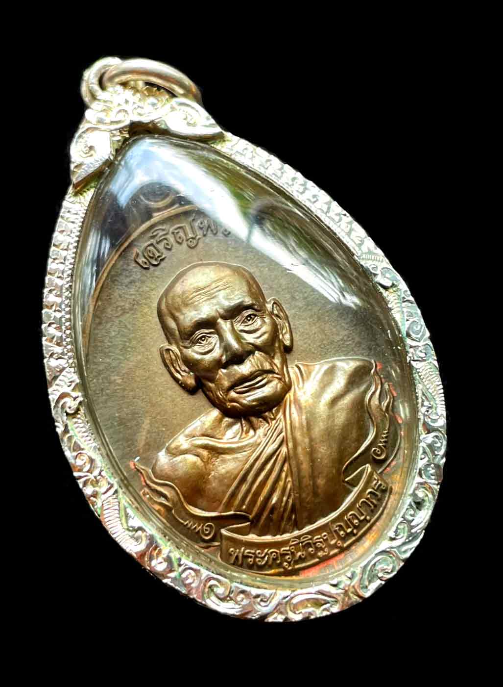 วัดใจ เหรียญเจริญพรบน รุ่นแรก หลวงพ่อพัฒน์ วัดห้วยด้วน จ.นครสวรรค์ ปี 2559 เนื้อทองเทวฤทธิ์ เลข 2959 เลี่ยมเงินแท้ สวยงาม