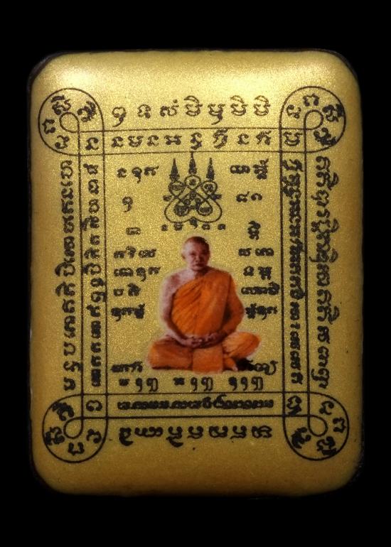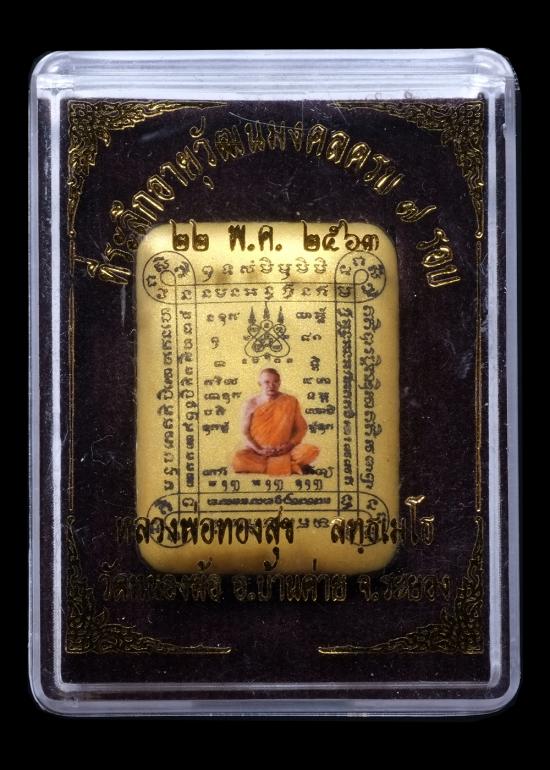ล็อกเก็ตสารพัดกัน หลวงพ่อทองสุข วัดหนองฆ้อ ระยอง พิมพ์เล็ก ฉากทอง เนื้อดำตะกรุดเงินมหาปราบ No.184 มีกล่อง แดงเคาะแรก