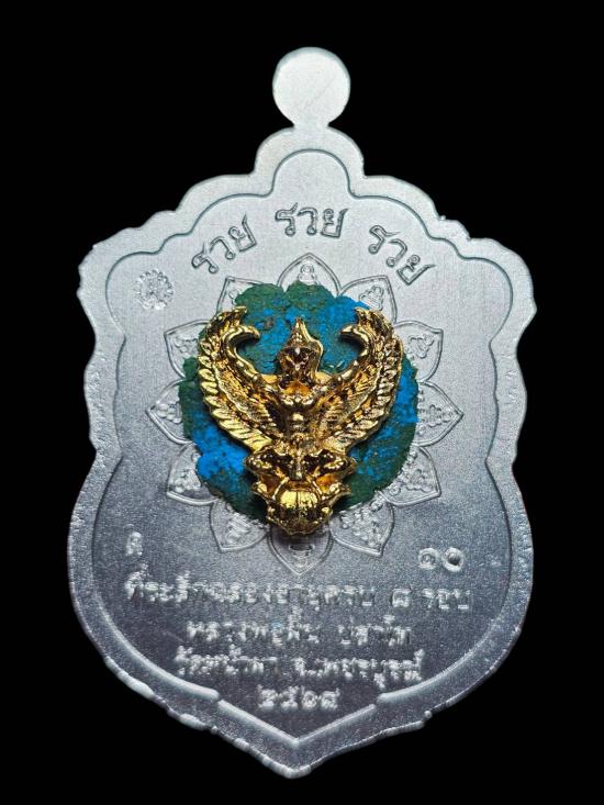 เหรียญเสมา8รอบรุ่นรวยรวยรวย หลวงปู่ฝั้น ปสาโท วัดหน้าผา (เนื้ออาบเงินหน้ากากเพ้นท์เสมือนจริง อุดมวลสารหล่อครุฑมหาอำนาจ เลข10) |