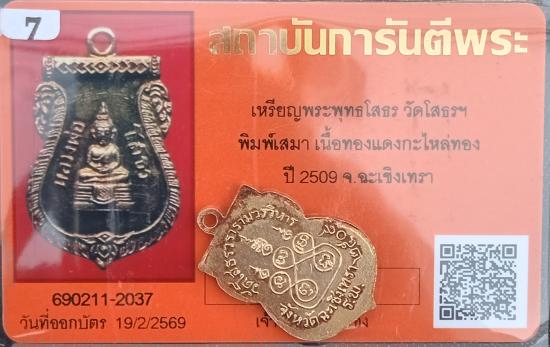 เคาะเดียวแดง..สวยจัดเนื้ออย่างกะนาก...เหรียญเสมาหลวงพ่อโสธร ปี2509 เนื้อทองแดงกะไหล่ทอง หน้าวงเดือนสายฝน มาพร้อมบัตรรับรองพระแท้ครับ
