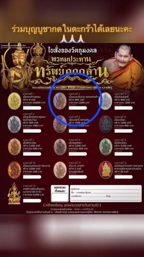 เหรียญ พรหมประทานทรัพย์ร้อยล้าน ปี68 หลวงปู่มหาศิลา สิริจันโท ธรรมอุทยาน วัดพระธาตุหมื่นหิน จ.กาฬสินธุ์ เนื้อชนวนต้นธาตุ พรายทองคำ เลข 273 มีกล่องเดิม ราคาจอง 2699 บาท |