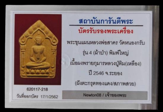 "สวยแชมป์"พระขุนแผนหลวงพ่อสาคร(สร้าง90องค์)วัดหนองกรับ รุ่น 4 (ผ้าป่า) พิมพ์ใหญ่ เนื้อผงพรายกุมารหลวงปู่ทิม(เหลือง) ปี 2546 จ.ระยอง (ฝังตะกรุดทองแดง)พร้อมบัตรGสภาพสวย....