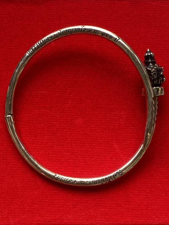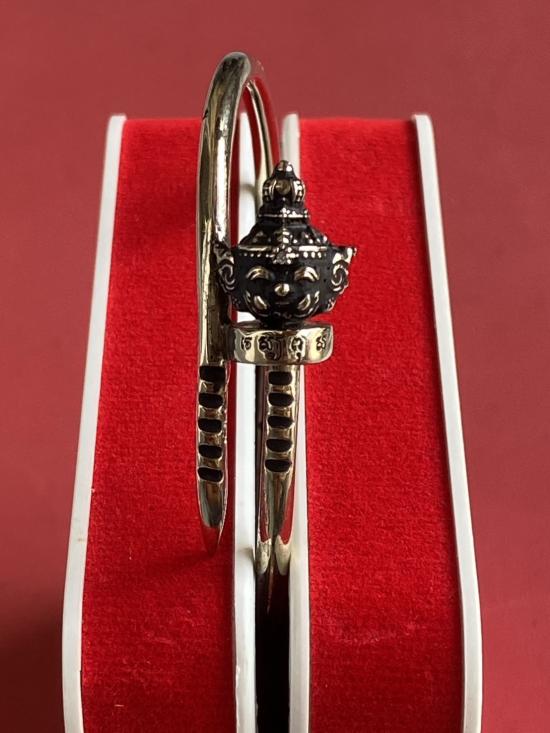 เคาะเดียวแดง หลวงปู่บุดดา กำไลท้าวเวส เนื้อ ทองขาวขัดเงารมดำ |