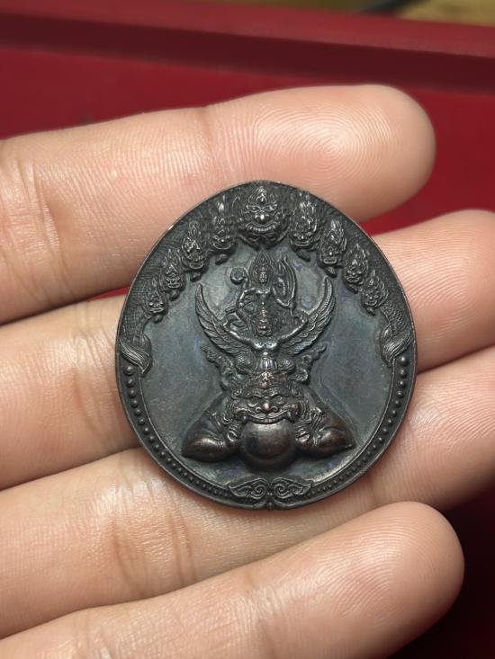 เหรียญพระนารายณ์ทรงครุฑประทับยืนบนพระ ราหู พิมพ์ใหญ่ ปี 2548 เนื้อทองแดงรมดำ เจ้าคุณธงชัย วัดไตรมิตร |