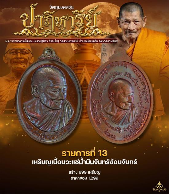 เหรียญปาฏิหาริย์ เนื้อนวะแช่น้ำมันจันทร์ซ้อนจันทร์ สร้าง 999 เหรียญ