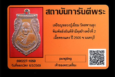 เหรียญเสมา"หลังยันต์ห้ามีอุสร้างครั้งที่๒(หลังเรียบ)"หลวงปู่เอี่ยม วัดสะพานสูง จ.นนทบุรี ปี ๒๕๐๕..เนื้อทองแดง..สภาพสวยเดิม..จมูกสวยๆ(ตามภาพ)..สำหรับหลวงปู่เอี่ยม ปฐมนาม วัดสะพานสูง จ.นนทบุรี พระเกจิอาจารย์เรืองนามผู้มีอาคมขลัง มีวาจาสิทธิ์ นอกจากนี้ท่านยังมักน้อย สันโดษ มีเมตตาสูง ก่อนมรณภาพท่านยังสั่งเสียว่า "ถ้ามีเหตุสุขทุกข์เกิดขึ้น ให้ระลึกถึงฉันก็แล้วกัน อมตะวาจาที่ท่านได้กล่าวไว้ร้อยกว่าปีล่วงมาแล้วยังความศักดิ์สิทธิ์มาถึงปัจจุบัน ประชาชนซึ่งเคารพศรัทธาได้มากราบไหว้ขอพรที่วัดในทุกๆวันไม่ขาดสาย นอกจากนี้วัตถุมงคลของท่านยังได้รับความนิยมมานานเนิ่นนานและมีประสบการณ์เล่าขานในด้าน แคล้วคลาดปลอดภัย คงกระพันชาตรี เมตตามหานิยมครบทุกด้าน..เหรียญนี้เสมา"เหรียญเสมา"หลังยันต์ห้ามีอุสร้างครั้งที่๒(หลังเรียบ)"..เนื้อทองแดงสภาพสวยเดิมๆ(ตามภาพ)..ประสบการณ์ดีมีมานานไม่ผิดหวังแน่นอน..ปัจจุบันสภาพนี้เจอไม่บ่อยเลยหายากแล้วครับ..พร้อมบัตรรับรองครับ***รับประกัน***