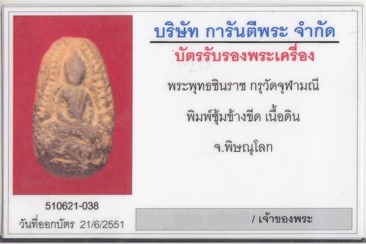 พระพุทธชินราช กรุวัดจุฬามณี พิมพ์ซุ้มข้างขีด จ.พิษณุโลก พร้อมบัตรการันตีพระ