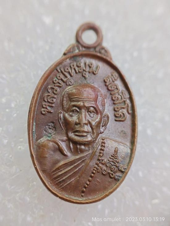 เคาะเดียวแดง+++เหรียญเม็ดแตง หลวงปู่หมุน วัดบ้านจาน เนื้อทองแดง รุ่นเสาร์ห้าบูชาครู ปี 2543 โค๊ดตอก