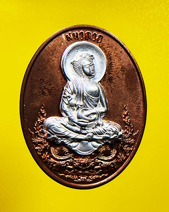 เหรียญพระอุปคุต รุ่นมหาลาภ เนื้อทองแดง หน้ากากเงินหน้า-หลัง หมายเลข 51 สวย สวย