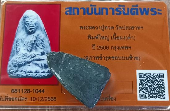 เคาะเดียวแดง+++พระหลวงปู่ทวด วัดประสาทฯ พิมพ์ใหญ่ เนื้อผง(ดำ) ปี2506 มาพร้อมบัตรรับรอง สภาพชำรุดขอบบนซ้าย