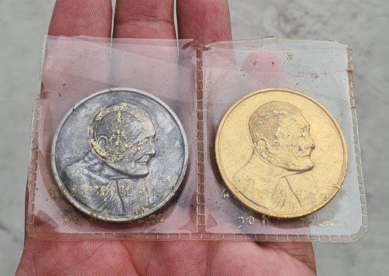 2เหรียญ สวยจัดซองเดิม...เหรียญกลมหลวงปู่แหวน กะไหล่เงิน+กะไหล่ทอง ฉลองอายุครบ 98 ปี วันที่ 16 มกราคม พ.ศ.2528 เป็นเหรียญกลมพิมพ์ใหญ่ขนาดเส้นผ่านศูนย์กลาง 3.5...100 เบาๆประกันแท้ ซองมีชำรุดตามเวลา แต่พระสวยมากๆๆอยู่ในซองเดิมมาตลอด
