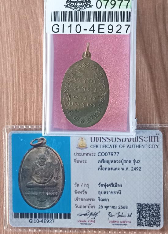 เคาะเดียวแดง+++เหรียญหลวงปู่รอด รุ่น2 เนื้อทองแดง พ.ศ. 2492 วัดทุ่งศรีเมือง จ.อุบลราชธานี มาพร้อมบัตรสมาคมครับ