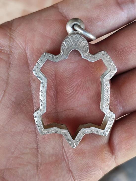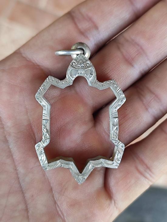 กรอบเงินรูปเต่า เปอร์เซ็นต์สูง 92.5 + + น้ำหนัก 13.3 กรัม เคาะเดียวแดงงานแกะมือสวยมาก