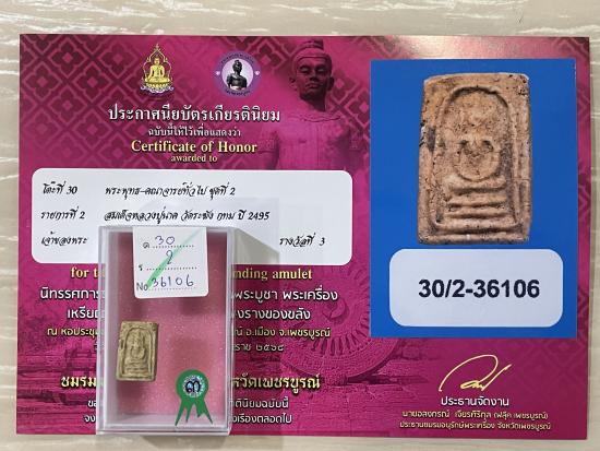 สร้างปี 2495 สภาพสวย สมบูรณ์ ไม่หักไม่ซ่อม รับประกันพระแท้ ดูง่าย ใบประกาศรางวัลที่2งานสมาคม