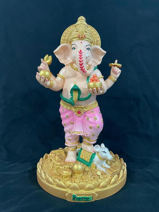 พระพิฆเนศ รุ่นชัยชนะ ขนาด 9 นิ้ว เพ้นส์สีเสมือนจริง ครูบา วชิริล ภทฺทฺมุนี วัดเดิมบาง จังหวัดสุพรรณบุรี หมายเลข 1484