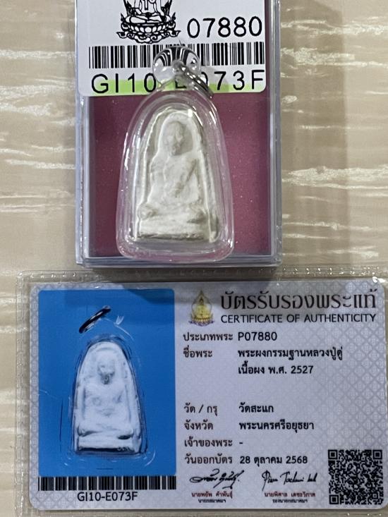 ด้านหลังติดจีวรหลวงปู่ดู่ อยุธยา พระธาตุเสด็จ มีหน้าตา สร้างปี 2527 รับประกันพระแท้ ดูง่าย สวยสมบูรณ์ไม่หักไม่ซ่อม พร้อมบัตรรับรองพระแท้จากสมาคม ขนาดห้อยคอ เหมาะกับไว้บูชาพร้อมกับสวดมนต์กับบทจักรพรรดิ์ของหลวงปู่